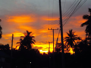 De middag werd niet veel spannender dan kleuren, zwemmen, filmpje kijken, douchen en naar het strand lopen voor het avondeten. Echter kwamen we onderweg onze buren tegen die vertelden dat er in het enige vanavond geopende restaurant net een groep van 30 man was neergestreken en het dus wel even zou duren eer we daar wat te eten zouden kunnen krijgen. Met een niet al te gezellige Novi (bleek later dat ze zulke zere ogen had van het zwembadwater, het is zout water met niet al te veel bleek erin) gingen we die uitdaging niet aan en we volgden hen naar een wat verder gelegen restaurant waar Thongbai ons even heen reed. Tijdens het eten viel de stroom uit (meteen een lesje boven- en ondergrondse elektriciteitskabels) en na het diner bij kaarslicht bracht de eigenaresse van het restaurant ons thuis waar al vlug alles aansprong en wij weer licht en internet hadden.